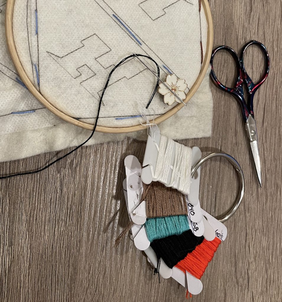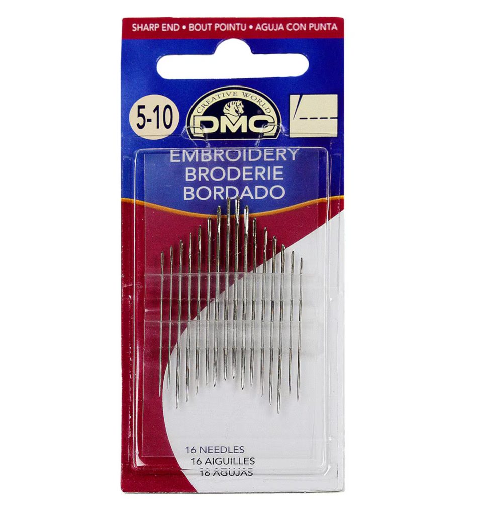 - Needles — I buy whatever embroidery-specific needles my craft or big box store has, I’m not picky on brand. I find that sizes 3-9 are what I use the most, but if you are using a bigger thread like a pearl cotton, you’ll want a bigger needle. With embroidery needles the larger the number, the smaller the needle. If you want a more in-depth exploration of needles, you can check out this blog.